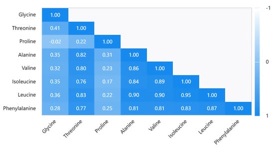 2.4. Correlation Analysis of the Contents of Amino Acids