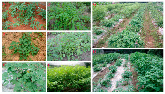 In total, 203 samples of wild P. angulata representing 16 populations were randomly collected from their main areas of distribution in China (Table 8, Figure 7). The identity of the samples was confirmed by reference to the species description provided in the herbarium at the Institute of Botany, Chinese Academy of Sciences, China (http://www.cvh.ac.cn/; accessed on 15 June 2021). The collected samples were planted during the regular crop growing season (early May) in 2018 at the field site of the Zhejiang Provincial Key Laboratory for Genetic Improvement and Quality Control of Medicinal Plants, Hangzhou Normal University, China. The field site was located at a geographic position of 30°32′18′′ N, 120°40′07′′ E and an altitude of 10 m. The phenotypes of some of the P. angulata materials are shown in Figure 8.