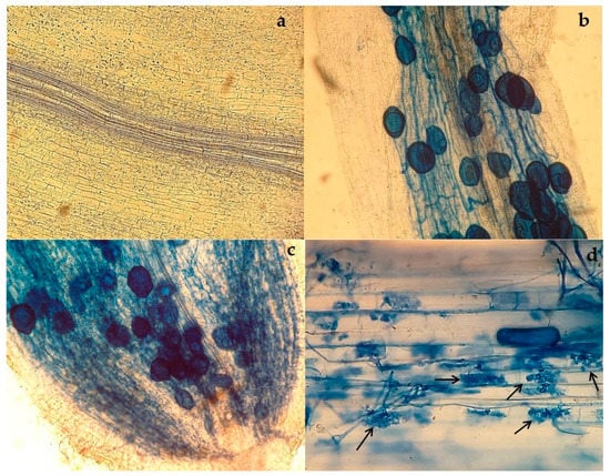 - Phillips, J.M.; Hayman, D.S. Improved procedures for clearing roots and staining parasitic and vesicular-arbuscular mycorrhizal fungi for rapid assessment of infection. Trans. Br. Mycol. Soc. 1970, 55, 158–161. [Google Scholar] [CrossRef]