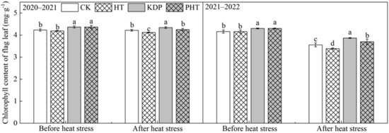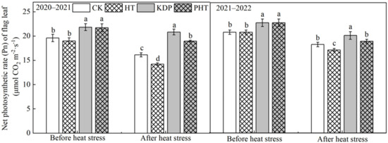 3.1. Effects of Spraying KH2PO4 on Photosynthesis in Flag Leaves of Wheat under Heat Stress during the Filling Period