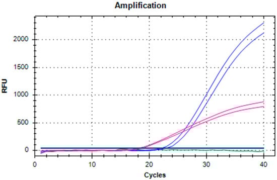 Varying annealing temperatures and concentrations of probes were then applied to optimize such parameters in the dRT-qPCR test (data not shown). The best results were obtained at 58.5 °C of annealing temperature and at the concentration of probes reported in the Materials and Methods section.