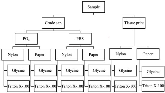 Regarding the rapid-extraction method, some procedures, already applied for other viruses and viroids, were combined according to the scheme reported in Figure 9.