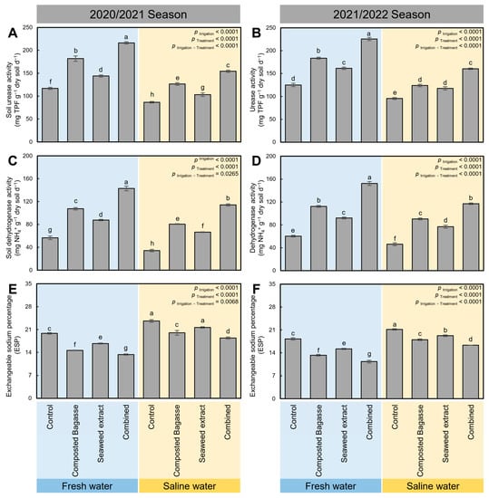 | p Irrigation × Treatment | <0.0001 | 0.06996 | 0.0492 | 0.1580 | 0.0003 | <0.0001 | 0.0488 | |