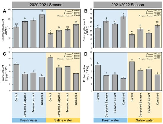 2.5. Dual Application of Composted Bagasse and Cyanobacteria-Based Bio-Stimulants Augmented the Proline Content of Barley Plants under Salinity Stress