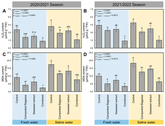 2.7. Dual Application of Composted Bagasse and Cyanobacteria-Based Bio-Stimulants Diminished the Oxidative Stress in Barley Plants under Salinity Stress