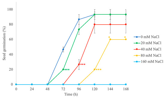 - Stassinos, P.M.; Rossi, M.; Borromeo, I.; Capo, C.; Beninati, S.; Forni, C. Enhancement of Brassica napus Tolerance to High Saline Conditions by Seed Priming. Plants 2021, 10, 403. [Google Scholar] [CrossRef] [PubMed]