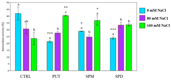 | 160 | 29 ± 2 b * | 31.5 ± 0.9 b *** | 12.5 ± 1 a ** | 107 (+62%) | 90.6 ± 1.1 a | 2.6 ± 0.8 a |