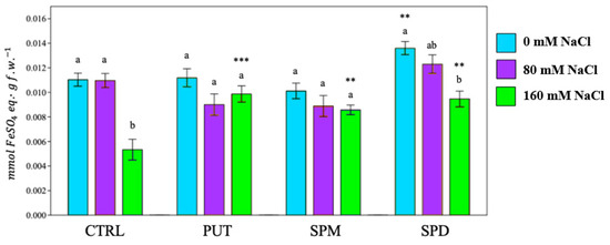 | 2.5 mM SPD | 0 | 0.270 ± 0.015 a | 112.6 ± 5.8 a *** |