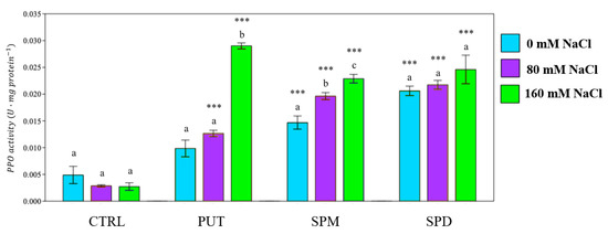 | 2.5 mM PUT | 0 | 1.347 ± 0.126 a | 0.170 ± 0.007 a *** |
