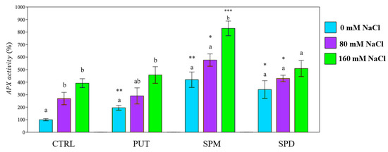 - Hu, X.; Zhang, Y.; Shi, Y.; Zhang, Z.; Zou, Z.; Zhang, H.; Zhao, J. Effect of exogenous spermidine on polyamine content and metabolism in tomato exposed to salinity–alkalinity mixed stress. Plant Physiol. Biochem. 2012, 57, 200–209. [Google Scholar] [CrossRef] [PubMed]
