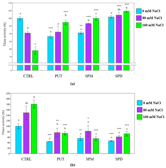 - Serafini-Fracassini, D.; Del Duca, S.; Beninati, S. Plant transglutaminases. Phytochemistry 1995, 40, 355–365. [Google Scholar] [CrossRef]