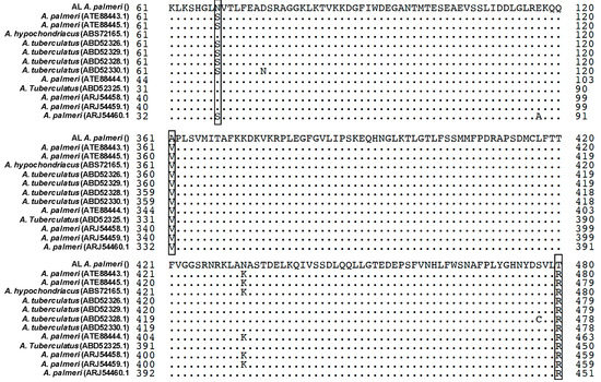 The data presented in this study are openly available in NCBI database: IN A. palmeri PPX2 is MH910646 and AL A. palmeri PPX2 is MH910647.