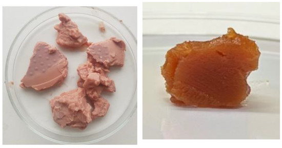 Images of BBE hydrogel (left) and BBE oleogel (right) used in this study.