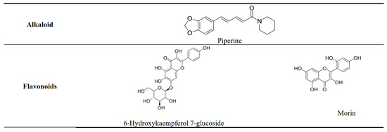 The alkaloid piperine has been reported to elicit anticancer effects through diverse mechanisms of action, which involve the modulation of cell cycle progression, antioxidant activities, and anti-apoptotic actions [43]. Also, piperine has a strong affinity with CD4 and CD8 receptors, suggesting its potential as a potent immunomodulator [44].