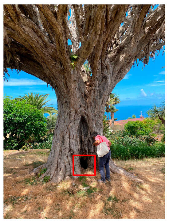 - Cabildo de Tenerife. Drago de Montaña de Los Dragos. Available online: https://arbolesmonumentales.tenerife.es/index.php/list-especies/details/9/111 (accessed on 16 December 2023).
