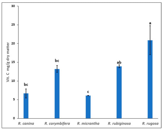 | R. canina | 5.32 ± 0.33 b | 1.42 ± 0.05 d | 15.45 ± 0.73 b | 19.44 ± 0.17 b |