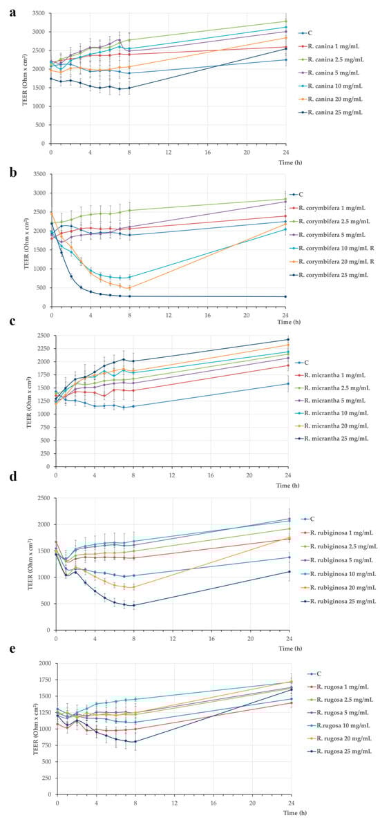 - Natoli, M.; Leoni, B.D.; D’Agnano, I.; D’Onofrio, M.; Brandi, R.; Arisi, I.; Zucco, F.; Felsani, A. Cell Growing Density Affects the Structural and Functional Properties of Caco-2 Differentiated Monolayer. J. Cell. Physiol. 2011, 226, 1531–1543. [Google Scholar] [CrossRef]