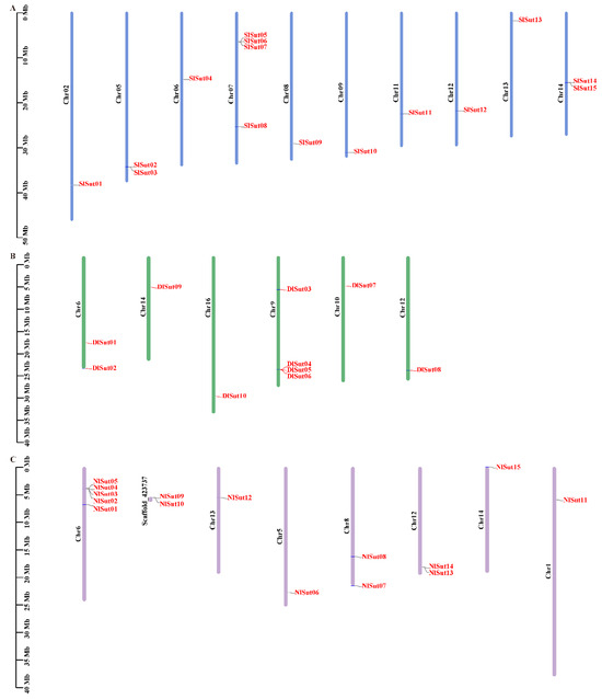 The positions of SUTs on the different chromosomes of litchi, longan, and rambutan were determined to determine the distribution of SUTs. The ten SUTs in longan were mapped to chromosomes 6, 9, 10, 12, 14, and 16 (Figure 2B; Table S2). Of the 15 SUTs in rambutan, 2 were not mapped to the chromosome, and the rest were mapped to the corresponding chromosome (Figure 2C; Table S3). Litchi and rambutan had the same number of SUT family genes, which were located on 10 chromosomes (Figure 2A; Table S4). In longan, the genes were located on fewer chromosomes and distributed unevenly, and most genes were distributed on Chr9 (4 genes). There were 13 genes in rambutan distributed on 7 chromosomes, only 1 gene on Chr1, Chr5, Chr13, and Chr14, and Chr6 had the most chromosome genes (5). The SUT family genes of litchi were evenly distributed on its 10 chromosomes. SlSut05, SlSut06, SlSut07, and SlSut08 were distributed on Chr07, with two genes on SL06 and SL14, and one gene on the other seven chromosomes.