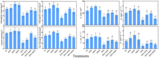 3.3. MT Improved Photosynthetic Pigment Content and Gas Exchange Parameters of R. typhina Seedling Leaves under Ni Stress