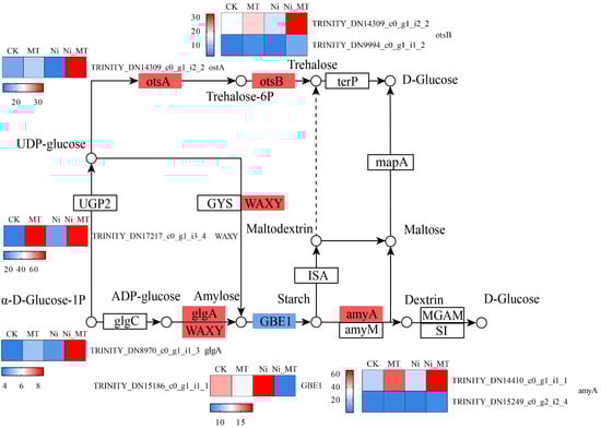 3.5.4. MT Regulated Starch and Sucrose Metabolism