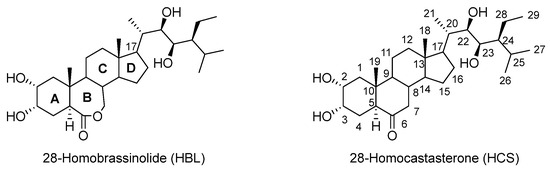 The contents of B-lactones, B-ketones, and 28-homobrassinosteroids were determined with previously developed test systems [76] using a two-stage method [77]. A detailed description of the method used for the analysis of BRs is presented in the Supplementary Materials.