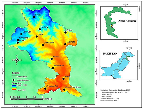 Map of the study area of Tehsil Hajira (Poonch District of Azad Kashmir, Pakistan).
