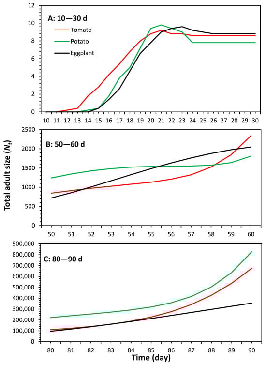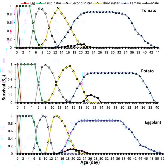 APA StyleAbbes, K., Harbi, A., Guerrieri, E., & Chermiti, B. (2024). Using Age-Stage Two-Sex Life Tables to Assess the Suitability of Three Solanaceous Host Plants for the Invasive Cotton Mealybug Phenacoccus solenopsis Tinsley. Plants, 13(10), 1381. https://doi.org/10.3390/plants13101381