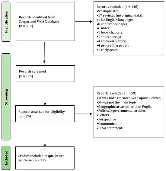 APA StyleSerio, F., Imbriani, G., Girelli, C. R., Miglietta, P. P., Scortichini, M., & Fanizzi, F. P. (2024). A Decade after the Outbreak of Xylella fastidiosa subsp. pauca in Apulia (Southern Italy): Methodical Literature Analysis of Research Strategies. Plants, 13(11), 1433. https://doi.org/10.3390/plants13111433