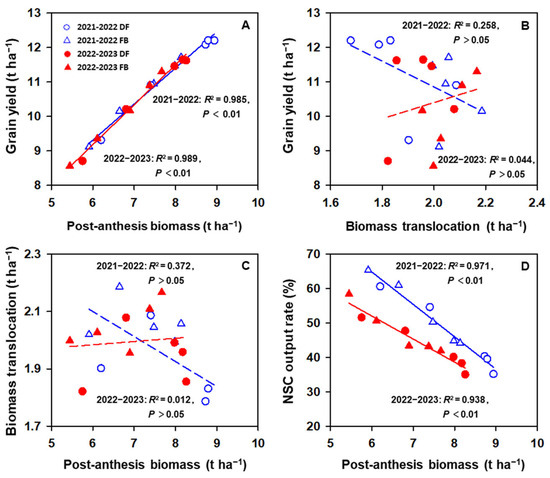 | Growing Season | Management Pattern | N Treatment | NSC Accumulation at Anthesis | Biomass Translocation | NSC Output Rate | The Contribution Rate of Biomass Translocation to Grain | Harvest Index |