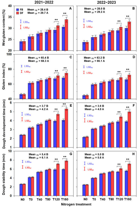 - Wieser, H.; Seilmeier, W. The influence of nitrogen fertilisation on quantities and proportions of different protein types in wheat flour. J. Sci. Food Agric. 1998, 76, 49–55. [Google Scholar] [CrossRef]