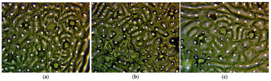 Using a Euromex bScope BS.1153-PLi type microscope (mounted with PLi 4/0.1 lens at 40× magnification, Euromex Microscopen B.V., Arnhem, The Netherlands) with WF120×/20 eyepiece and Levenhuk m1400 plus camera (Levenhuk, Inc., Budapest, Magyarország), on each of the replicates, a 5 mm × 5 mm area was analyzed (Figure 9).