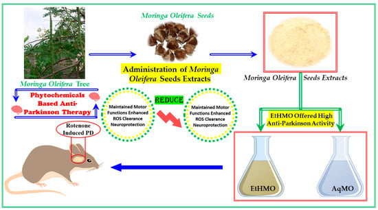 In the current study, we aimed to explore the effects of aqueous and ethanolic extracts from M. oleifera seeds on a rotenone-induced PD mouse model (Scheme 1).