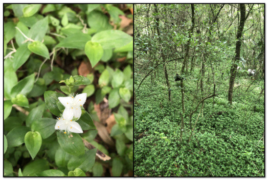 Numerous invasive plant species are introduced in Florida and spread rapidly due to Florida’s geography, climate, and diversity in the horticultural and agricultural industries. Around 1500 non-native species have been documented in Florida, costing approximately USD 45 million annually to manage them in natural areas [1,2]. Two invasive plant species including small-leaf spiderwort (Tradescantia fluminensis) and Tahitian bridal veil (Gibasis pellucida) are prevalent in Florida and have garnered attention from land managers in recent years [3,4].
