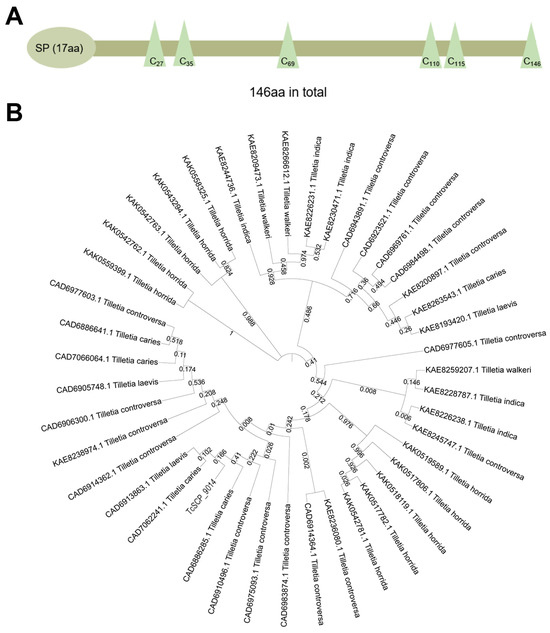 Du, Z.; Weng, H.; Jia, H.; Zhang, B.; Wu, B.; Chen, W.; Liu, T.; Gao, L. Characterization of a Small Cysteine-Rich Secreted Effector, TcSCP_9014, in Tilletia controversa. Plants 2024, 13, 1523. https://doi.org/10.3390/plants13111523