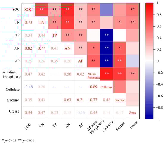 The responses of SOC, TN, AN, AP, and Alkaline Phosphatase to BSCs were closely related to the ecosystem type (Figure 4), and their values were significant (p < 0.05).