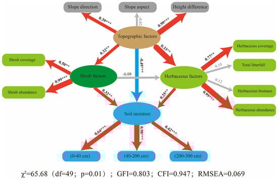 3.4. The Direct and Indirect Effects of Topographic-Vegetation Factors Affect Soil Moisture
