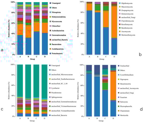| Fungal community | A | 63.67 ± 17.78 b | 82.84 ± 8.26 c | 73.44 ± 12.16 c | 0.67 ± 0.07 bc | 2.22 ± 0.35 bc |