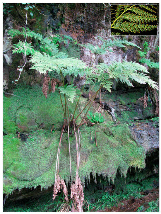 - Laínz, M. Culcita C. Presl. In Flora Iberica; Castroviejo, S., Laínz, M., López González, G., Montserrat, P., Muñoz Garmendia, F., Paiva, J., Villar, L., Eds.; Real Jardín Botánico, C.S.I.C.: Madrid, Spain, 1986; Volume 1, pp. 75–76. [Google Scholar]