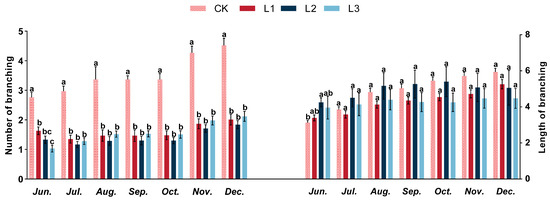 2.1. Effect of Shading Treatment on Lateral Branching Ability of P. yunnanensis Seedlings
