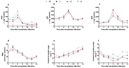 2.4. Effect of Shading Treatments on the Physiological Characteristics of P. yunnanensis Seedlings