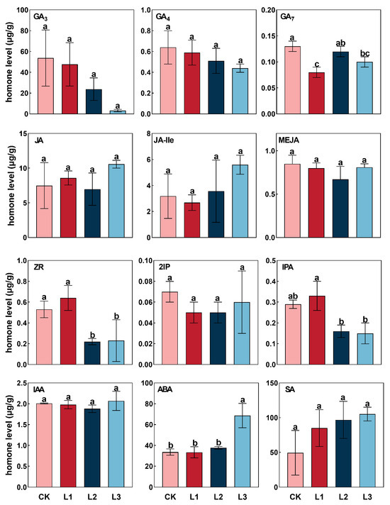 2.5. Response of Endogenous Hormone to Shading Treatments