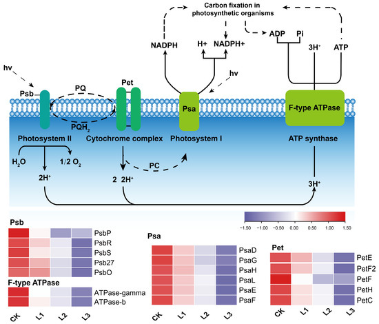 2.8. Response of Related Genes in the Photosynthesis Pathway to Different Shade Treatments
