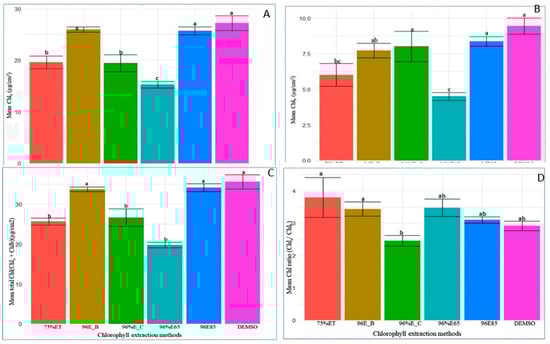 | Chla+b | 96% Ethanol | 96%ETOH extract-1 | 35.37 ± 1.43 b | 82.24 | 29.64 | 40.93 |