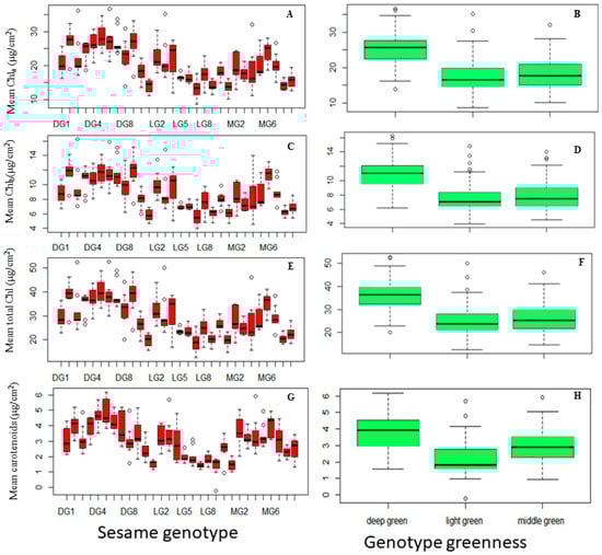 2.5.1. Variation in Chlorophyll Concentration across Sesame Genotypes and Leaf Greenness Categories