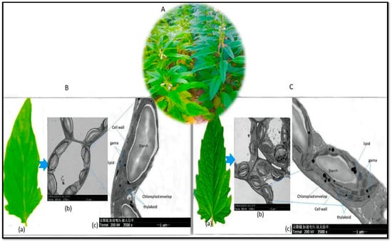 2.6. Chloroplast Anatomical Variation between Deep Green and Light Green Sesame Leaves