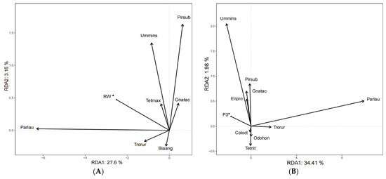 - ter Braak, C.J.F.; Schaffers, A.P. Co-Correspondence Analysis: A New Ordination Method to Relate Two Community Compositions. Ecology 2004, 85, 834–846. [Google Scholar] [CrossRef]