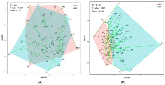 At last, to delve deeper into the variation in species composition within the same plots across different years, non-metric multidimensional scaling (NMDS), also based on the Bray–Curtis dissimilarity matrix of plants or spiders, was employed [35].