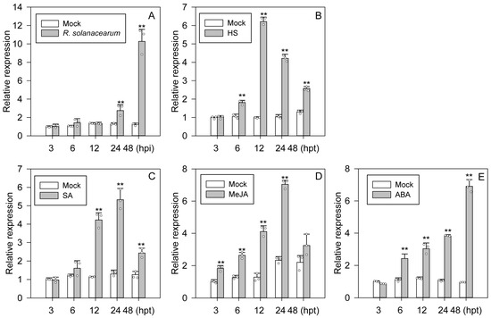- Maimbo, M.; Ohnishi, K.; Hikichi, Y.; Yoshioka, H.; Kiba, A. Induction of a small heat shock protein and its functional roles in Nicotiana plants in the defense response against Ralstonia solanacearum. Plant Physiol. 2007, 145, 1588–1599. [Google Scholar] [CrossRef]