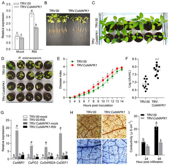 2.5. Knock-Down of CaMAPK1 Attenuated the Resistance of Pepper against R. solanacearum Infection