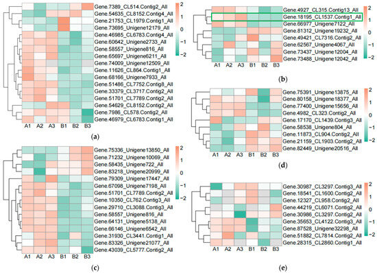The ORFs of Unigene were detected using getorf (EMBOSS:6.5.7.0), then the ORFs were aligned to transcription factor protein structural domains using hmmsearch (data from TF), and then Unigene was competently characterized based on the transcription factor family profiles described by PlantTFDB. Clean reads were compared to reference gene sequences using Bowtie2 (v2.4.5), followed by RSEM to calculate gene and transcript expression levels [39,40].
